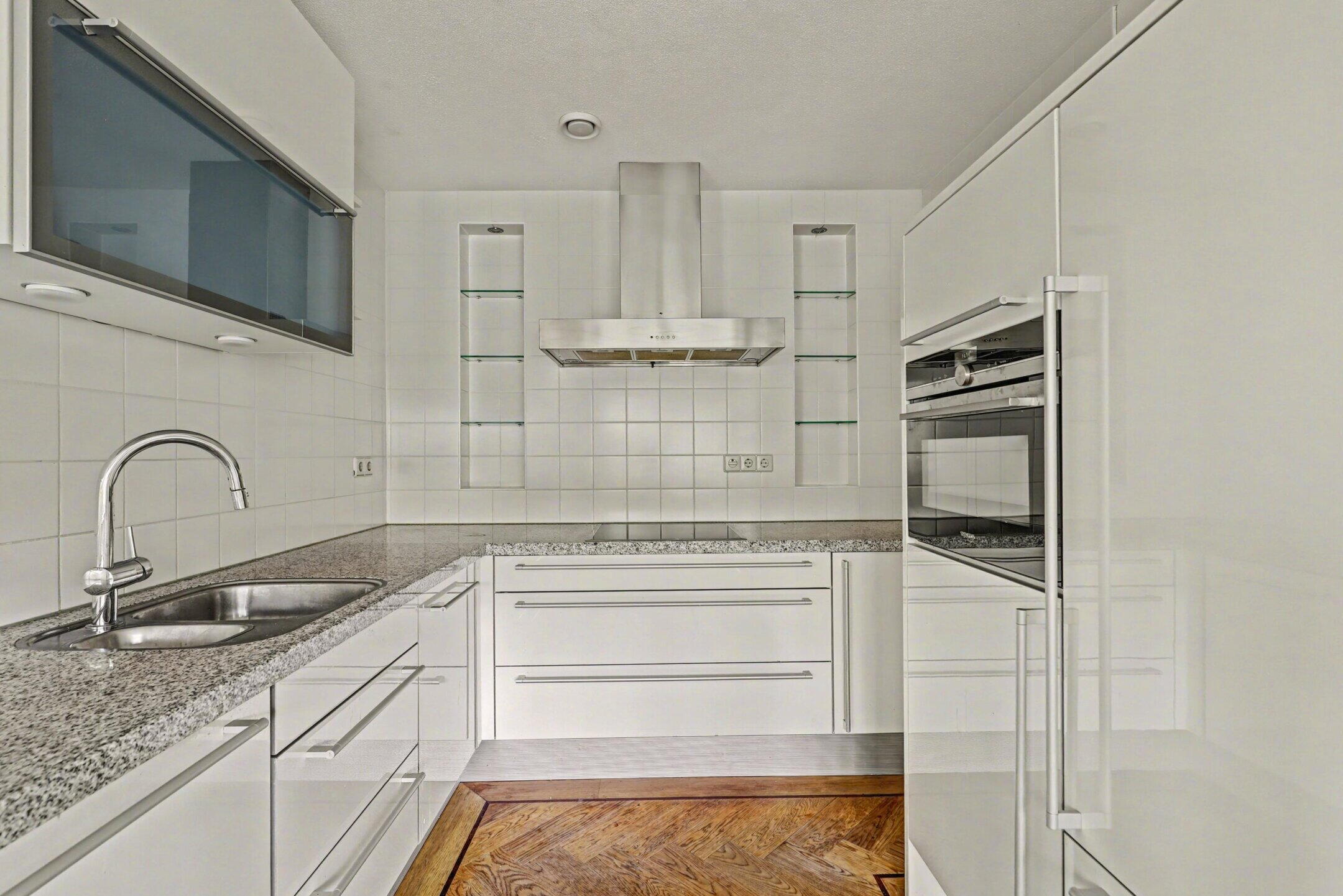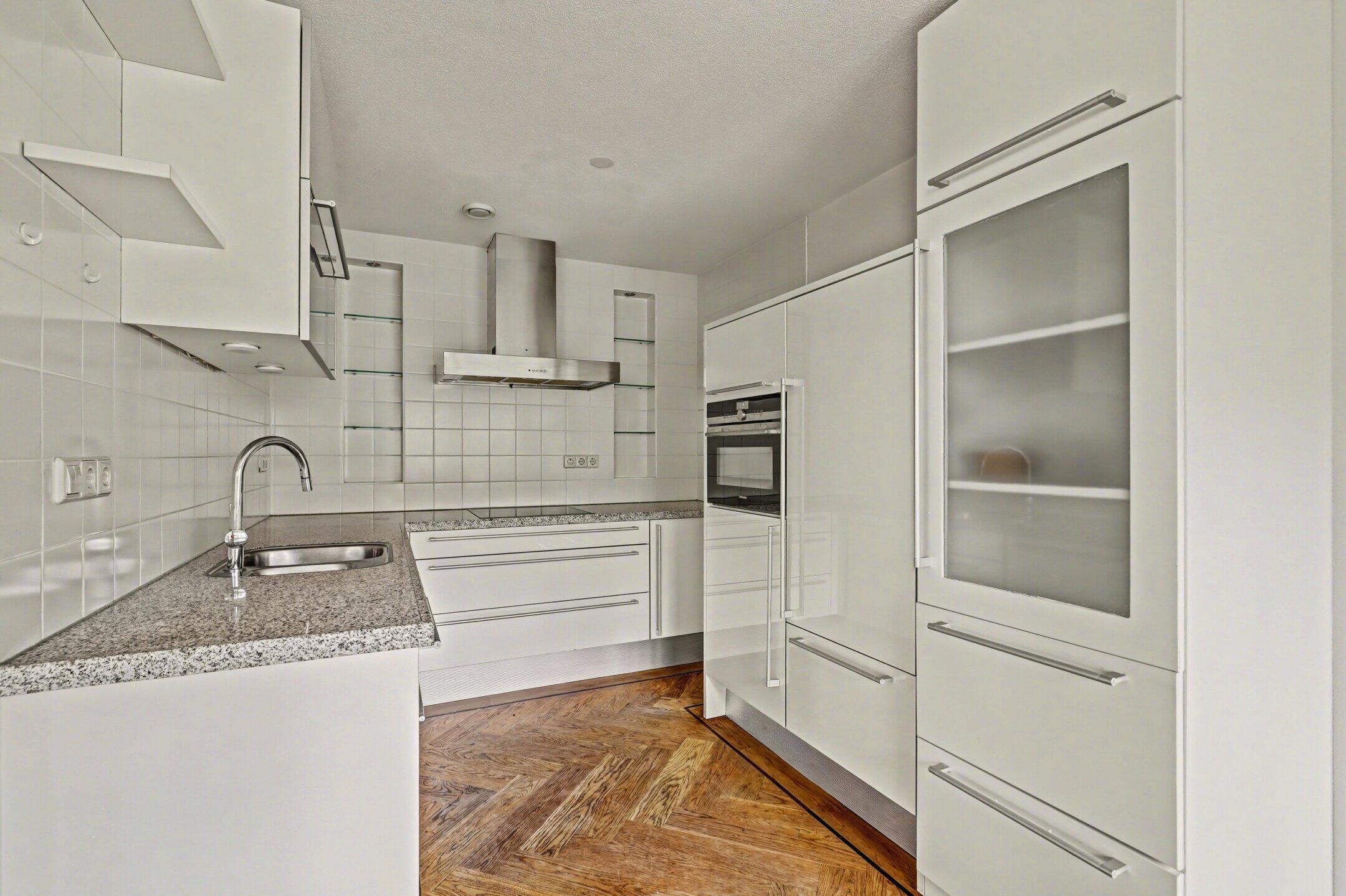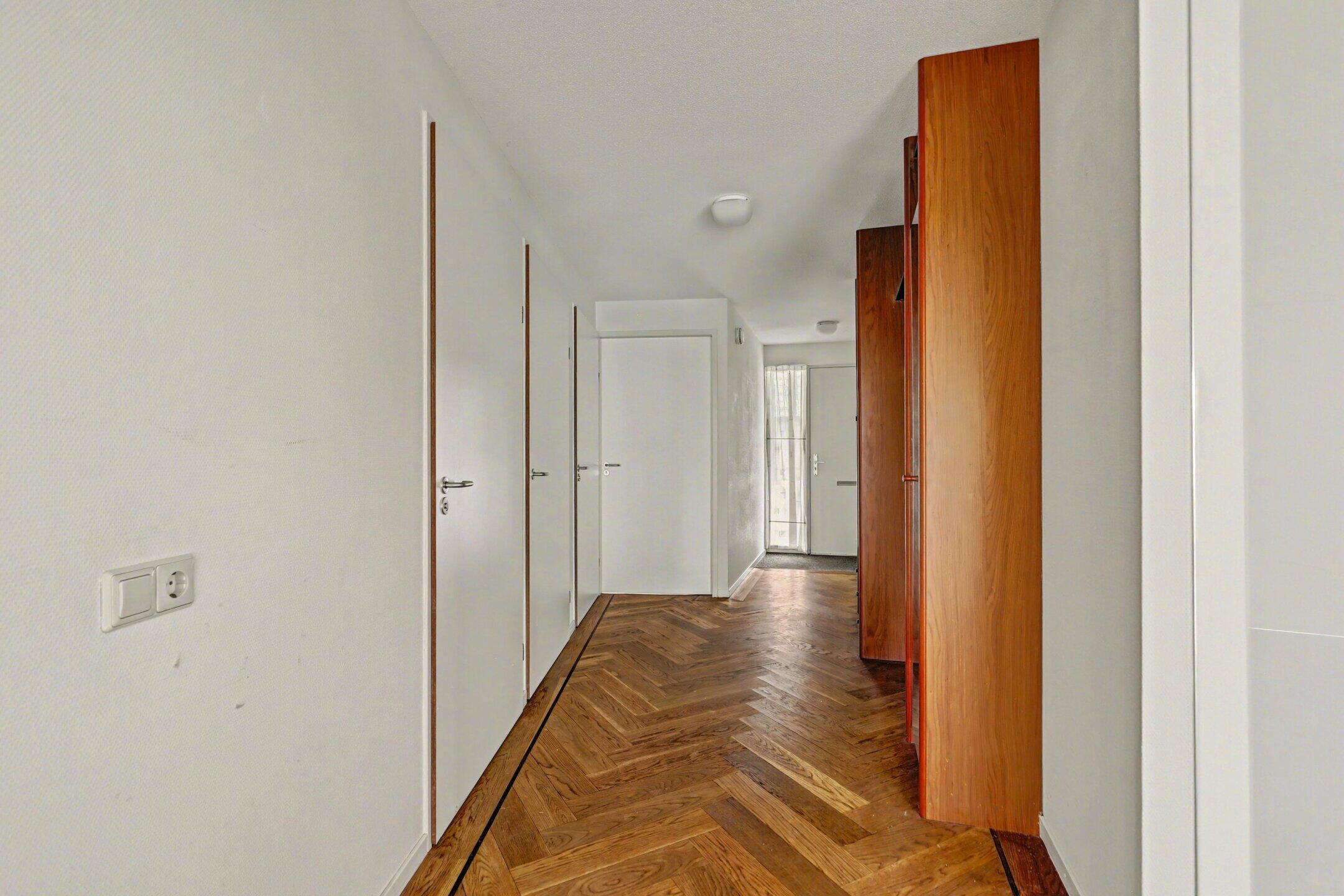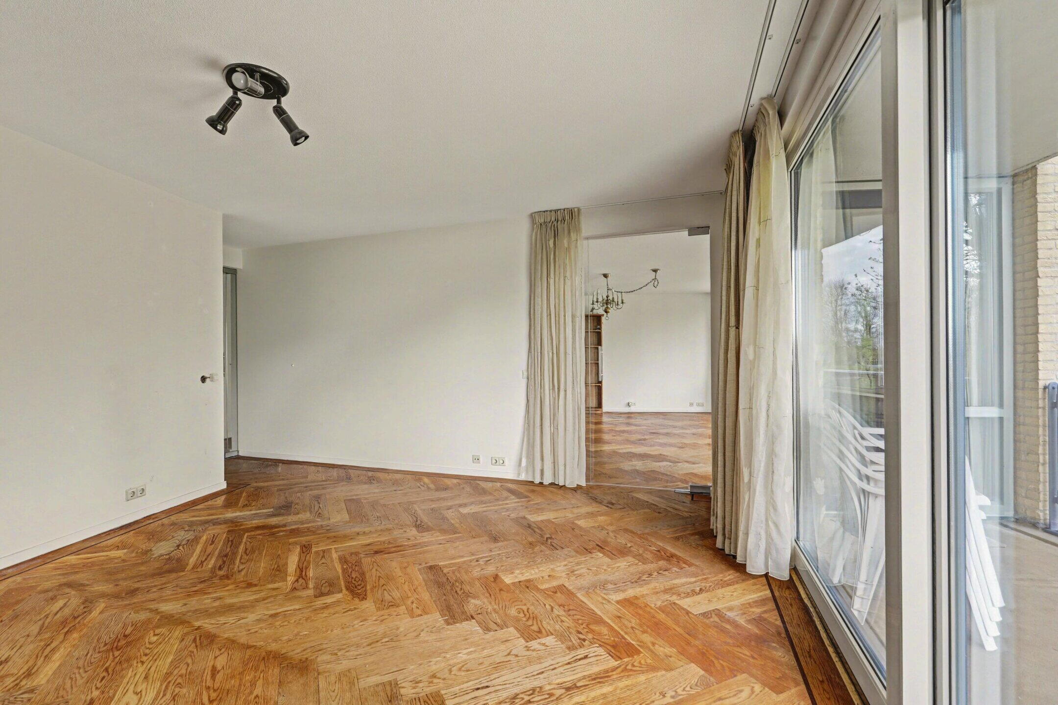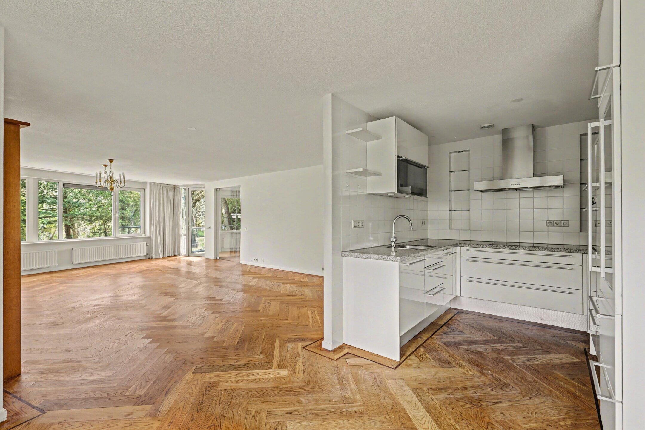 Het gehele appartement is voorzien van een prachtige eiken visgraat parketvloer.